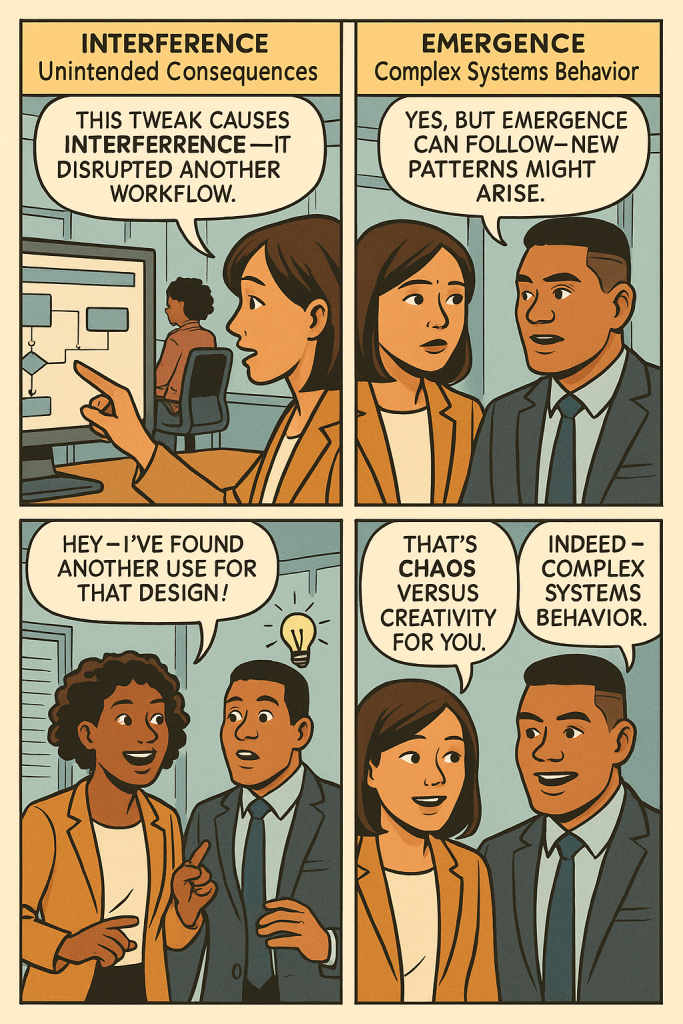 Nuevos comportamientos o conocimientos derivados de las interacciones del sistema.